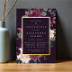 Chic floral confirmation invitation features a border of burgundy marsala purple, blush pink, and dusty blue flowers, with lush botanical foliage and greenery and gold foil trim. Personalize with your church ceremony and celebration details in modern lettering on a rich purple background.