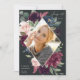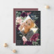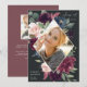 Elegant floral photo graduation announcement features a vertical photo in a diamond shaped frame of watercolor flowers and foliage in rich shades of dusty rose pink, burgundy plum purple, sage green, and dusty dark blue. Personalize with your graduate's name, class year, and school. Add a personal message to the back, along with an additional photo.