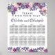 Deep plum roses, blush pink flowers and lots of deep purple wildflowers create beautiful top and bottom borders on this 8-Table seating chart. There is lots of greenery and leaves and dangles. Please find your seat is written in a bold serif font. The wedding couple names are written in a beautiful script font.