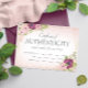 Plum Blush Flowers Certificate of Authenticity Thank You Card