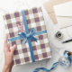 Make your gifts stand out with plum buffalo plaid holiday wrapping paper, featuring chic typography for a stylish and festive Christmas presentation.