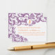 Royal Black Damask Wedding RSVP Response Cards Shown with the beautiful paper color showing which is felt - you choose background color from almost 200 colors and papers which alter the colors so click on customize and create your one of a kind invitation! shown with coral and lilac fonts - you choose colors in fonts as well - if you would like a glossy finish (glossy on front side only) order the basic, linen or metallic papers - for a matte finish order recycled, felt or speckled.