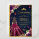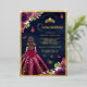 Plum Floral Butterfly Navy Blue Quinceanera Gold Foil Invitation