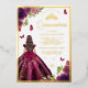 Plum Floral Dress Butterfly Quinceanera Gold Foil Invitation
