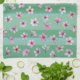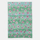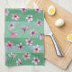 Pink plum blossoms float by of green and aqua stripes in this spring dishtowel.