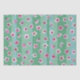 Pink plum blossoms float on green and aqua stripes.