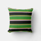 This throw pillow design features stripes colored plum, goldenrod, forest green, black, and white.