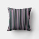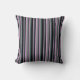 This throw pillow design features a striped pattern having colors like plum, gray, dark slate gray, and black.
