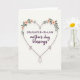 Designed with a soft, off-white background, this card centers on a large heart outline drawn in deep plum, setting a gentle, affectionate tone ❤️. Along the lower curve of the heart, small looped flourishes add a sweet, decorative touch without crowding the space. At the top point of the heart sit two small flower clusters, each with peach-pink petals, darker centers, and a few green leaves that lean inward like a quiet embrace. Inside the heart, “DAUGHTER-IN-LAW” appears near the upper middle in a simple sans-serif style, colored the same deep plum as the outline. Beneath it, “mother’s day blessings” is placed in a flowing cursive style, also in plum, creating a softer contrast against the crisp uppercase line above 🌼. The spacing leaves plenty of breathing room, so the eye moves calmly from the flowers down through the lettering. Two peach-pink blossoms with dark centers rest at the heart’s tip, framed by small green leaves against the off-white field.