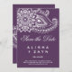 This plum Indian paisley save the date card is perfect for a modern wedding. The mehndi design features a lovely floral henna mandala and paisley motif on a plum purple background. Match this design with the coordinating pieces in purple, turquoise, pink, and orange in the Colorful Indian Paisley Wedding Collection: https://www.zazzle.com/collections/119662428781277925.