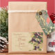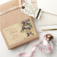 A vintage style label for jams and jellies with an illustration of purple plums on a branch with green leaves, made from an old postcard painting, with brown colored scrolls and text. The date can be left for writing the date, or change the dotted text to the year you require.