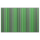 This design features a pattern of stripes having colors like plum, lime, and black.