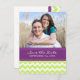 Wedding custom photo save the date announcement postcards in elegant and contemporary chartreuse lime green, eggplant dark purple and white fun and modern zigzags chevron pattern, stylish and fully customizable with your wedding details and your own photo. Also available in many other products for the wedding party.