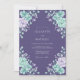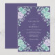 This design features a rich plum purple backdrop adorned with vibrant botanical clusters. Refreshing mint green succulents and pale lavender roses create a sophisticated color palette. Delicate berry sprigs and soft leaf accents provide an elegant and romantic aesthetic for a seasonal event.