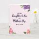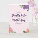 This greeting card features a soft blush background with a centered message arranged in a clear, layered layout. “Daughter In Law” and “Mother’s Day” sit largest in the middle in flowing plum lettering, giving the words a tender, affectionate look ❤️. Smaller supporting lines—“FOR MY,” “ON,” and “WITH LOVE”—appear nearby in a simple print style, also in plum, guiding the eye through the message. Floral clusters frame the design on a diagonal, as if gently leaning in toward the words like a warm embrace. In the upper right corner, lavender and deep violet blossoms open among leafy green stems, adding a romantic, garden-like touch. In the lower left, soft pink flowers with sunny yellow centers brighten the corner and echo the caring tone 🌼. The overall layout feels airy and balanced, with generous open space around the text and flowers on the blush backdrop. The petals show subtle shading, with deeper purples at the folds and lighter highlights along the edges.
