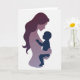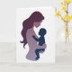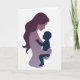 On the front of the card a layered silhouette shows an adult figure cradling a small child in side profile, set against a bright white background. The adult’s long, flowing hair is a deep plum, and the body is rendered in soft lavender layers that feel like carefully stacked cut shapes. The adult tilts their head toward the child, and the close spacing between their faces suggests a tender, affectionate bond ❤️. Gentle gradients within the layers add quiet depth, like a soft glow gathering around their embrace. The child appears as a small dark indigo shape tucked safely in the adult’s arms, with one tiny hand reaching outward as if curious and trusting. A short message sits near the top in muted purple lettering, while a smaller line of text rests near the bottom in a darker indigo tone 🌼. The edges of each colored layer are crisp and slightly offset, creating a subtle shadowed outline around the figures.