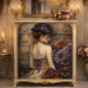 This design transforms furniture into romantic focal points worthy of a Parisian salon. The sophisticated color palette and dynamic composition make each piece a statement of elegance, perfect for adding dramatic flair to dressing rooms, boudoirs, or formal sitting rooms. The artwork's masterful attention to historical detail and luxurious elements elevates ordinary furniture into extraordinary conversation pieces that capture the essence of Victorian haute couture while maintaining timeless appeal.