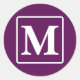 Elevate your belongings with our 'Plum Perfection' round sticker. Featuring a one-letter monogram in a rounded corner square frame, it's a chic and personalized touch for labeling items in style. Add a dash of elegance and individuality to your belongings.