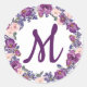 Very pretty plum and blush pink roses create a lush floral wreath border for this monogrammed envelope seal. A modern script is used to create a bold plum initial