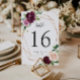 Plum Purple Floral Geometric Wedding Table Number