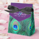 Elegant plum purple and vibrant emerald green, royal blue and teal blue peacock feather wedding favor boxes. You can change the bow color, add text in the font style, size and color of your choice on this beautiful plum purple peacock wedding favor box.