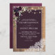 Plum Purple Rustic Wood Lace Script Wedding Invita Invitation