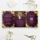 Plum Purple Sunflowers Mason Jar QR Code Wedding Tri-Fold Invitation