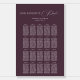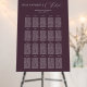 Plum-colored seating chart with luxury romantic script. Stylish for vintage or winter weddings. Features elegant calligraphy for table assignments.