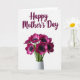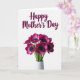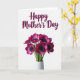 Designed with a bright floral focus, this card shows a generous cluster of deep magenta blossoms gathered in the lower center, rising from a simple white vase against a plain white background. The petals look soft and velvety, and each flower has a dark, near-black center dotted with tiny stamens that add texture and contrast. The arrangement feels like a thoughtful offering ❤️, as if it’s been set down for someone special and admired up close. Near the top, a flowing, cursive-style message appears in a rich plum color, standing out clearly without crowding the flowers. The text is centered above the bouquet, leaving plenty of open space that keeps the layout airy and calm. Gentle, even lighting smooths across the scene, with only the faintest shadows around the vase and stems. A few blossoms tilt at slightly different angles, like they’re leaning toward one another in a quiet, affectionate moment 🌼.