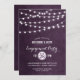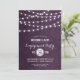 Chic modern summer wedding engagement party invitation design with simple elegant glowing string lights hanging across the top and a classy mix of modern and calligraphy script fonts on a printed faux watercolor texture background. A simple and stylish preppy design, perfect for summer! Click the CUSTOMIZE IT button to customize fonts, move text around and create your own unique one-of-a-kind invitation design.