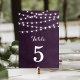 Chic modern summer wedding table number card design with simple elegant glowing string lights hanging across the top and a classy mix of modern and calligraphy script fonts on a printed faux watercolor texture background. A simple and stylish preppy design, perfect for summer! Click the CUSTOMIZE IT button to customize fonts, move text around and create your own unique one-of-a-kind invitation design.