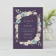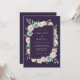 This design features a rich dark purple background that creates a striking contrast for delicate botanical elements. A lush arrangement of cream roses and teal anemones surrounds the center, complemented by soft green foliage. The moody and romantic color palette of plum and aqua provides an elegant aesthetic perfect for an evening event. Watercolor textures add depth to the blooms, creating a timeless look.