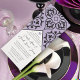 Plum Trim Black Damask Swirls Wedding Invitation