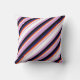This throw pillow design features a plum, white, red, midnight blue, and black colored striped pattern.