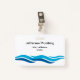 Simple yet modern plumber business employee work badges with colorful blue water wave graphic to represent plumbing work and space you can add your company name and professional name by replacing the text templates with your own names. Designed for a plumber fleet, contractor, or independent Plumber.