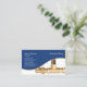 In this plumber/plumbing business card, your name and details appear on the top blue section, while a section of metal water piping appear in the bottom section. Both these wavy sections are separated by a chrome strip line.. Customize this card immediately with your name and details.
