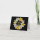 Note Card with Thank You inside Ring of Flowers or customize for blank. Yellow and White flowers on black background.