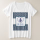 Women's personalized plus sized white t-shirt with navy blue and white floral print.