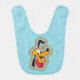 First of all, the shipping was fast. This bib was everything I had hoped for. It has such a smooth feel to it and is machine washable. The colors are vivid and the image quality is just as pictured on the web. Will be happy to give this as a New Baby gift !