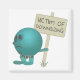 A sad Pluto stands while holding a sign that reads "Victim of Downsizing". Pluto is truly, very sad. :(