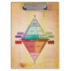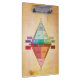 This geology clipboard features a plutonic QAPF diagram, used in geology to classify intrusive igneous rocks by their percent compositions of Quartz, Alkali Feldspar, Plagioclase Feldspar, and Feldspathoids. The colorful diamond-shaped figure appears on an old, stained parchment paper background. Of course, it's really acrylic plastic.