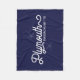 This fleece blanket features the text Plymouth, Massachusetts in a white nautical font with starfish accents. The background is navy blue, but can be changed to any color of your choice. Perfect for beachy, coastal or nautical theme decor.