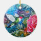 A bright and tiny hummingbird feasts upon a pink flower. A true delight for any gardener who enjoys these special birds. Original watercolor painting by P. Allingham Carlson. A perfect ornament for the hummingbird lover.