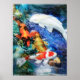 Brightly colored fish swim through the waters of a garden pond, Nishikigoi (koi) are symbols of affection or love. Poster/print.