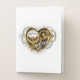 Mechanical, volumetric, steampunk heart with pressure gage, steel and gold gears on white background. Steampunk style.