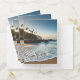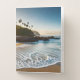 This pocket folder is shown with a photo print of a beautiful tropical beach scene.
