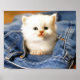 Poster shown with a photo print of a cute kitten in the blue jeans pocket. Customize this item or buy as is. Stock Image