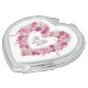 The Floral Heart and Butterfly Motif: The use of the heart motif (symbol of love and tenderness) delicately formed from pink and white flowers immediately captures the attention of the female audience.