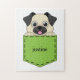 An illustration of a cute pug puppy peeping on the green pocket. This adorable pug dog design is a gift idea for dog lovers, fur mom, fur dad, pet lovers and animal lovers.