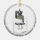 Lightweight, smooth, pure white ornament with nice sheen. Perfect size to be seen from across the room ... and to attract closer inspection! Price was great for ordering enough for the whole family! Clear, bold black design just as requested. Matches the order exactly. Just so nice!